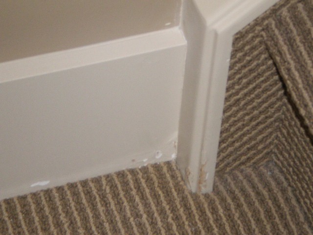 You can see this home’s water damaged baseboard before and after the